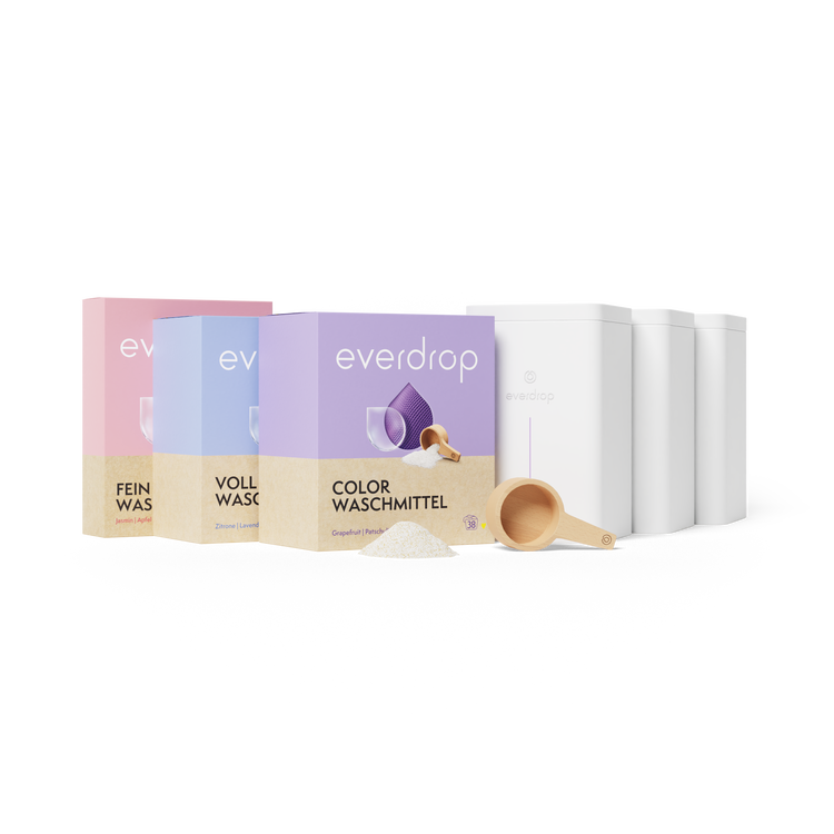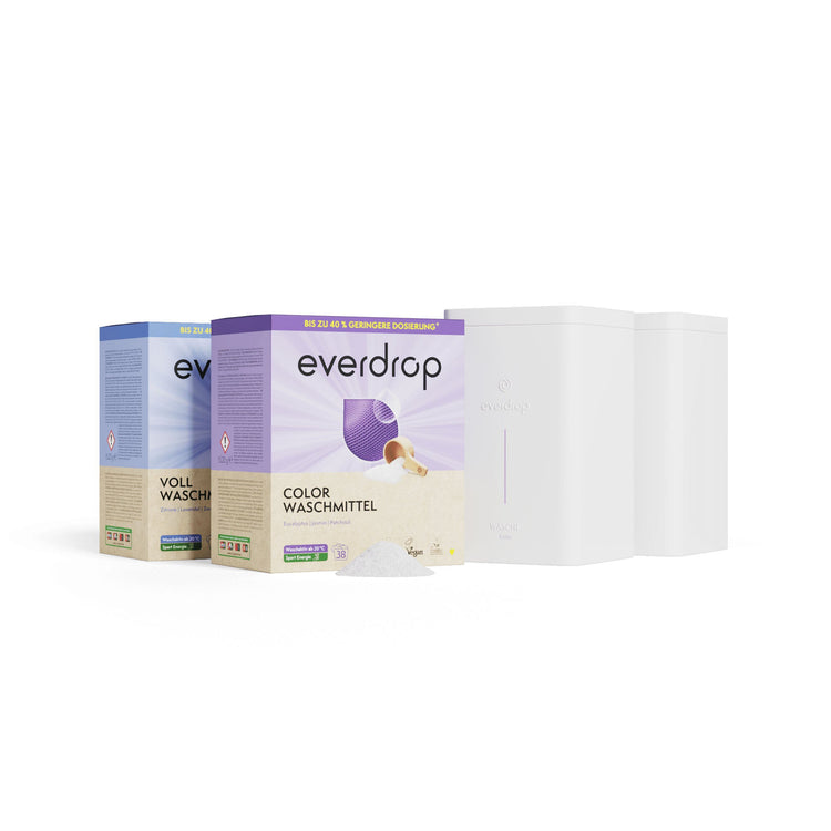 Umweltschonenderes Waschmittel, dass die Wäsche strahlend sauber macht und einen angenehm frischen Duft hinterlässt. Mit dem everdrop Wasserhärtekonzept sorgt es zudem dafür das weniger unnötige Chemie in die Umwelt gelangt.