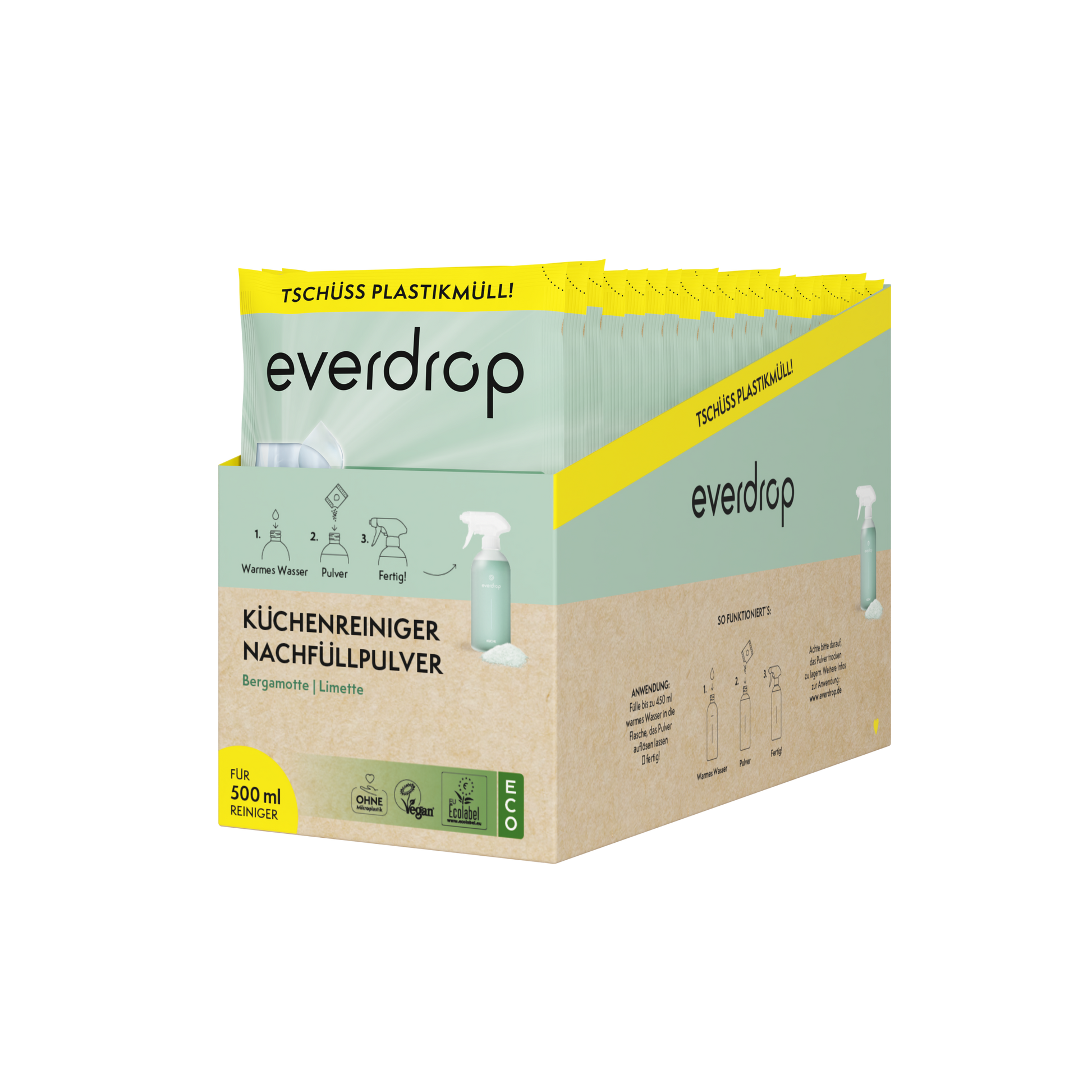 Das everdrop Küchenreiniger Starter-Set ist extra stark gegen hartnäckige Verschmutzungen wie Fett und Eingebranntes und bringt hygienische Sauberkeit in jede Küche. Denn egal ob Herd oder Ofen – mit dem Küchenreiniger entfernt man Schmutz ganz problemlos. Dank pflanzenbasierter Wirkstoffe ist der Reiniger besonders geeignet für die Anwendung auf Flächen mit Lebensmittelkontakt. Also perfekt für die Küche und schonender für die Umwelt!